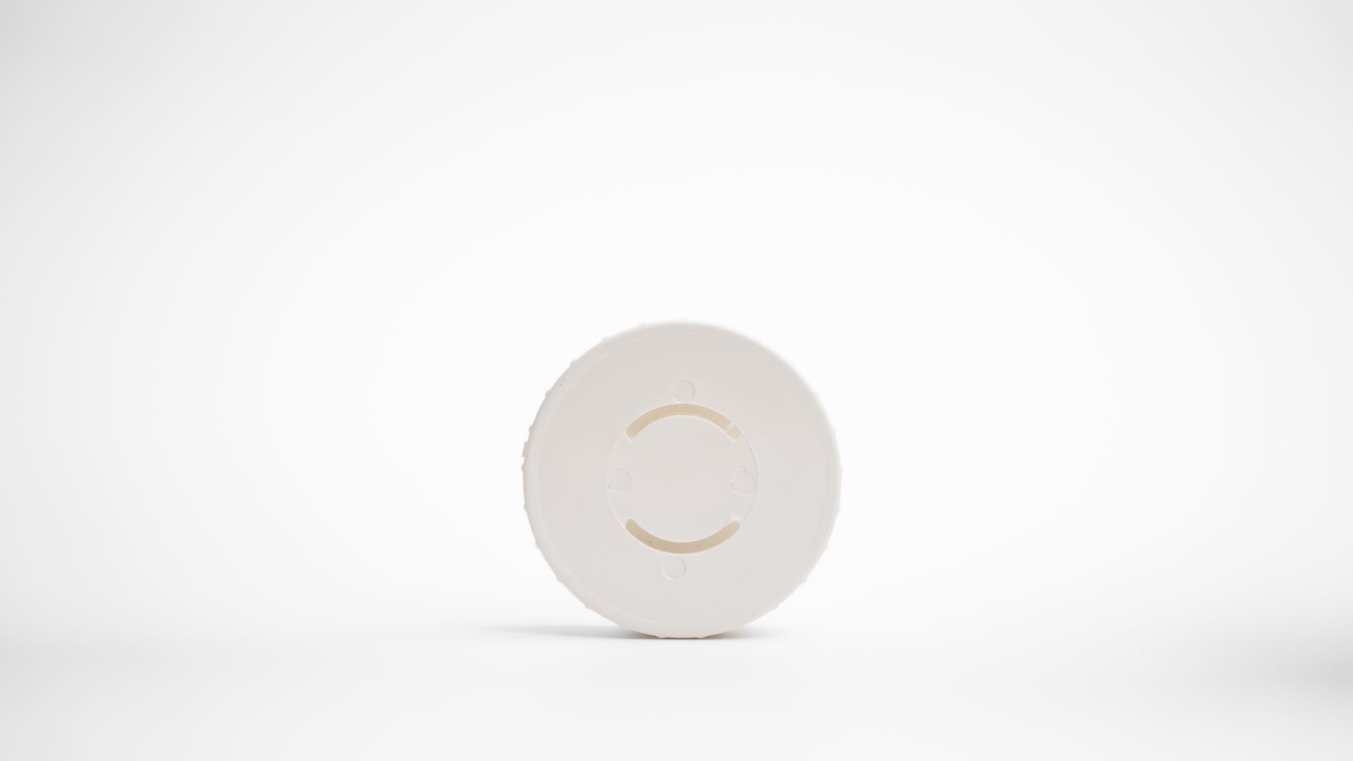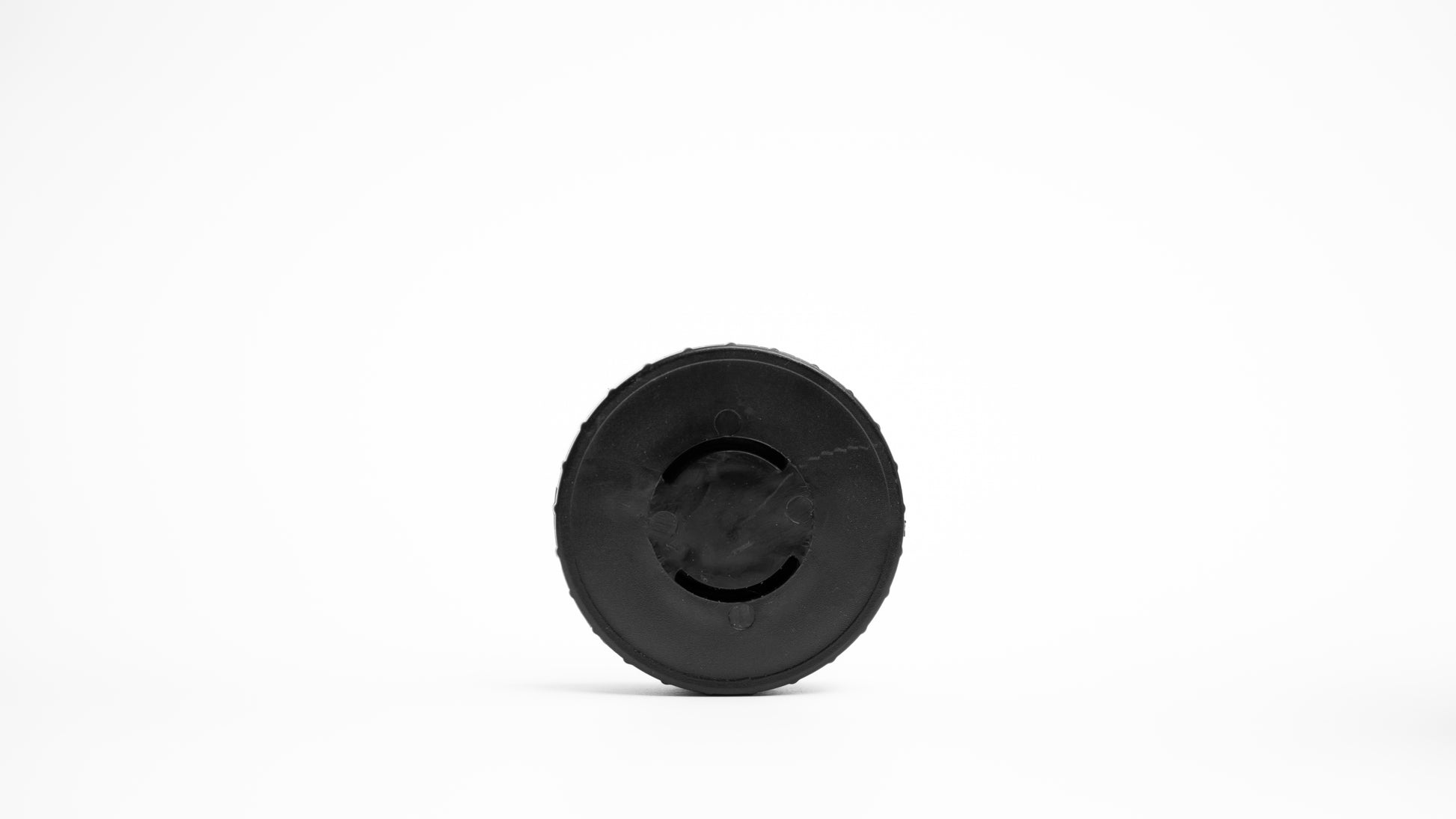 The black and white version of CordPuck, the cord storage device that will allow you to store and protect your chargers in three simple steps: thread your cord through, line up the ends, and twist.